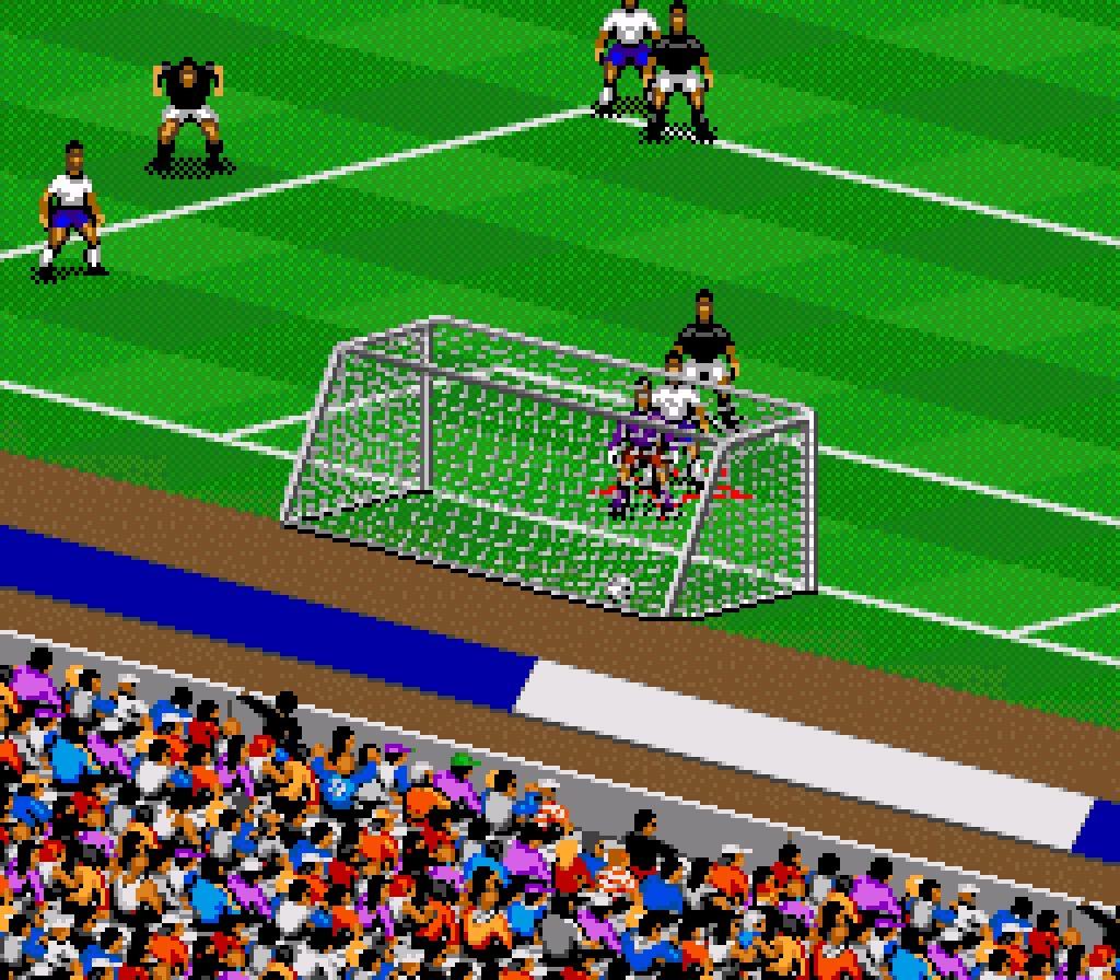 Bien sûr, avec le recul, tout n’était pas parfait. La physique du ballon était parfois étrange, les gardiens faisaient n’importe quoi et le hors-jeu était totalement absent. Donnant lieu à des attaques absurdes. Les collisions entre joueurs ressemblaient plus à du rugby qu’à du football. Et ne parlons pas de l’arbitrage, inexistant : les tacles par derrière étaient un sport national dans FIFA 94, sans aucune sanction. Blood Bawl avant l’heure 😉 Presque aussi violent que la caméra qui se barre parfois n’importe où…