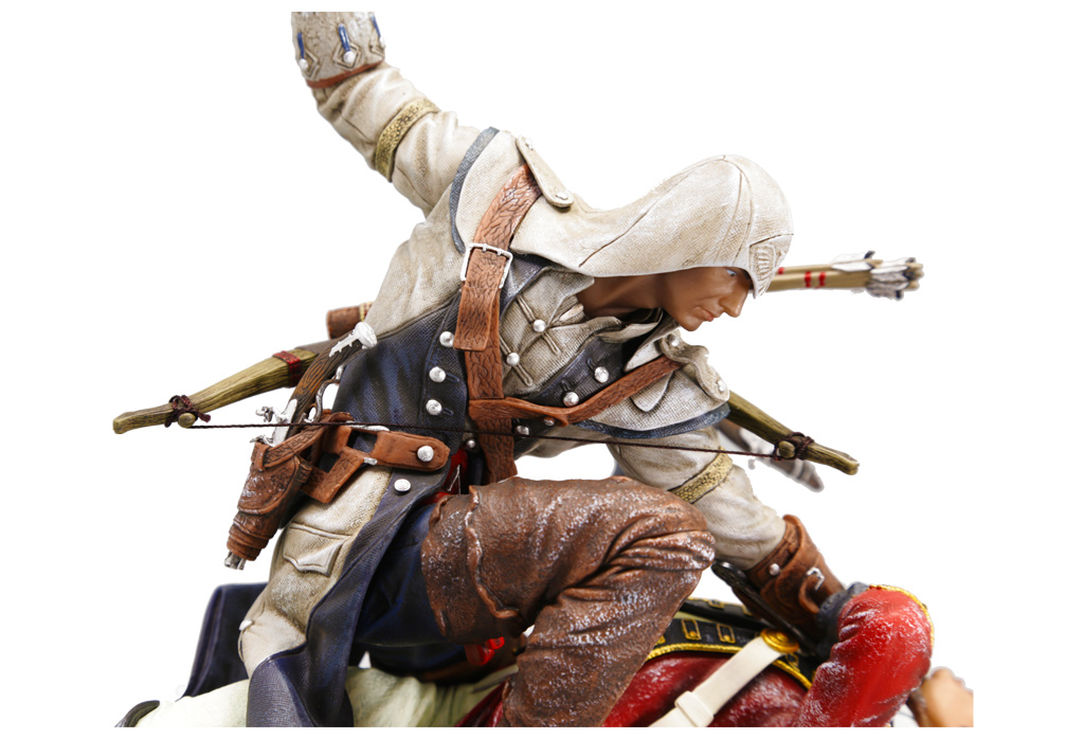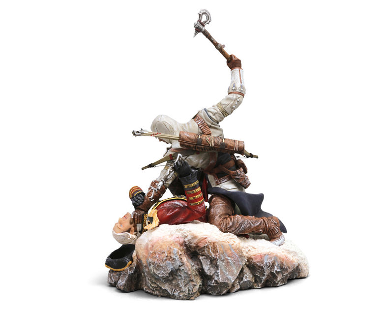 Cette figurine de 28cm représente Connor Kenway, le maître Assassin du 3e épisode du jeu, en train d’exécuter un général anglais. Une scène que les fans auront reconnue, extraite du tout premier trailer qui avait été dévoilé pour le jeu.