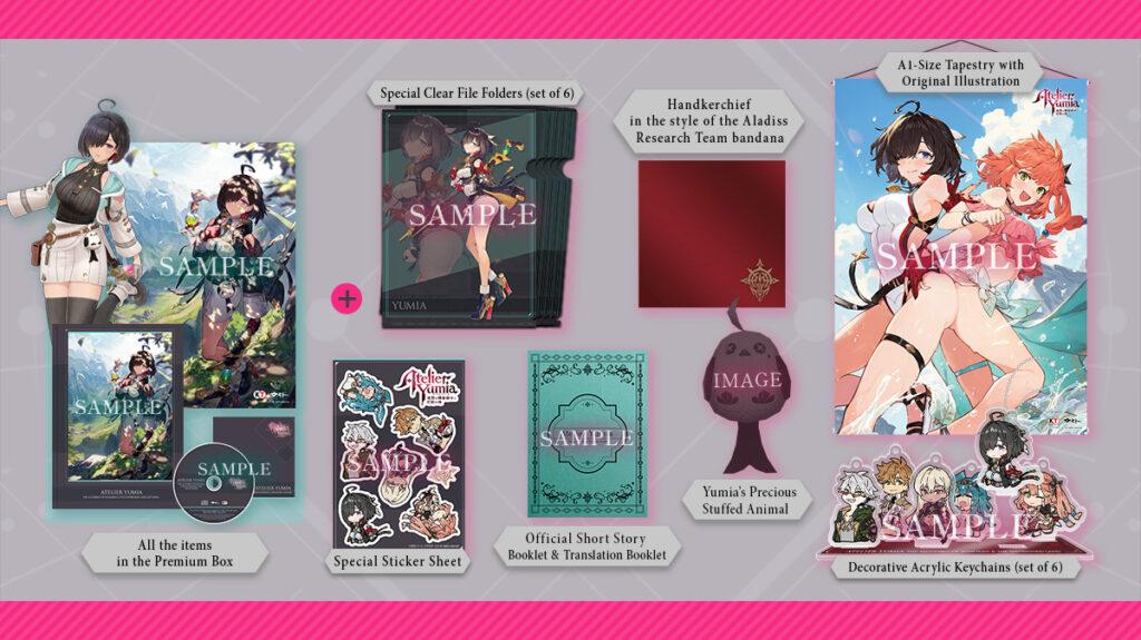 - La PREMIUM BOX. Qui comprend le jeu, un artbook, une illustration sur toile format B3, un CD de musiques supplémentaires et un costume exclusif pour Yumia, « Alchimiste en congé ».