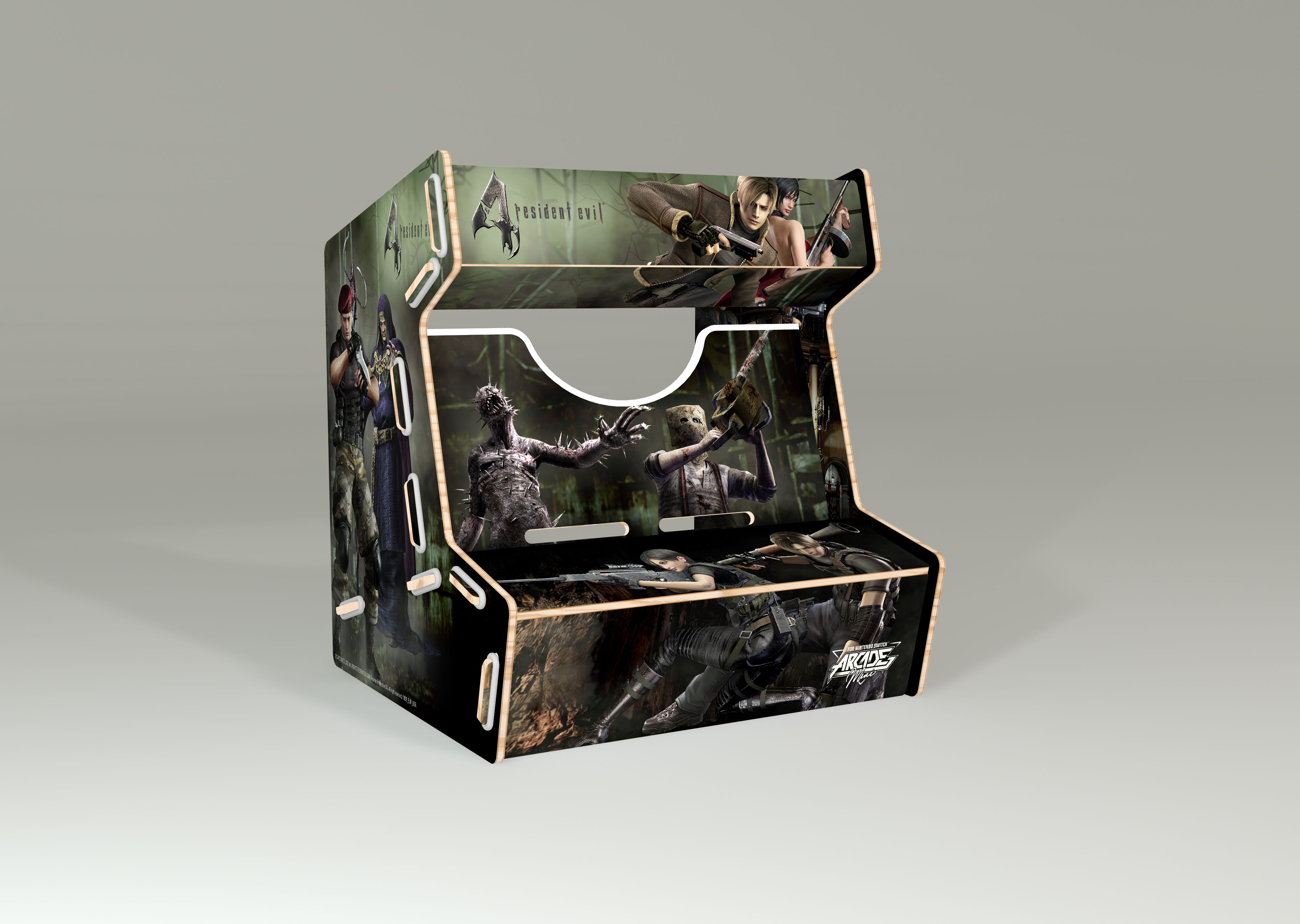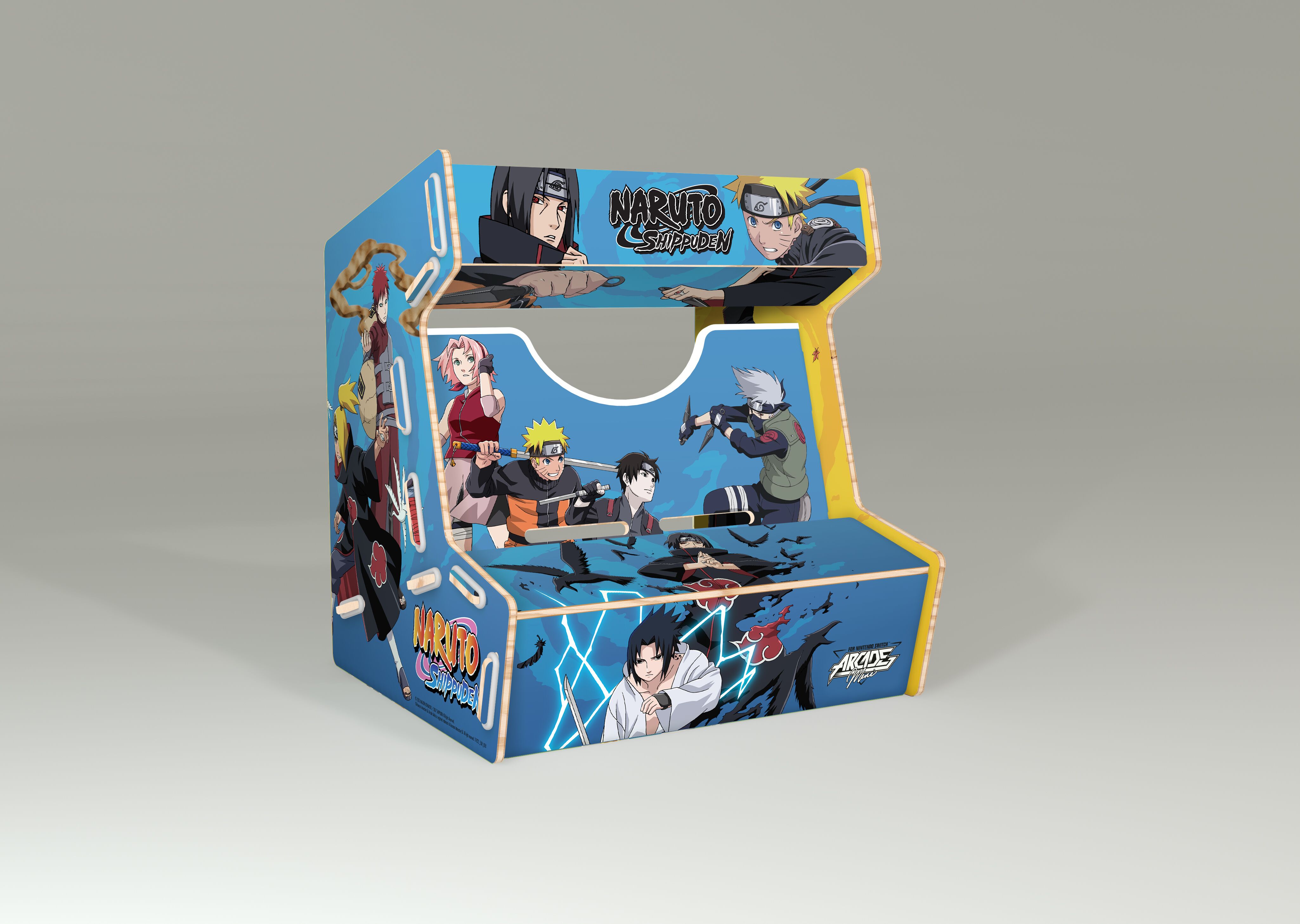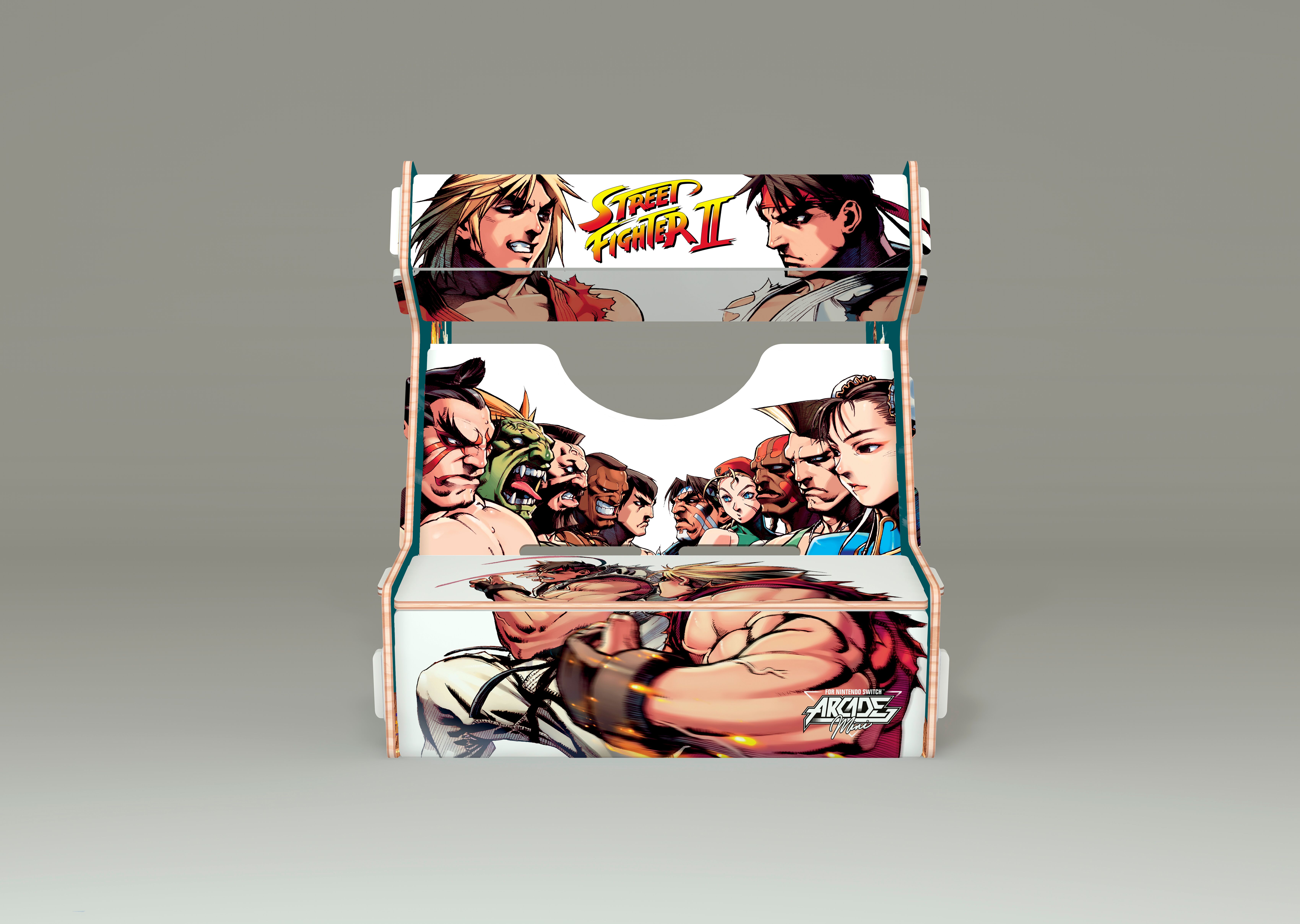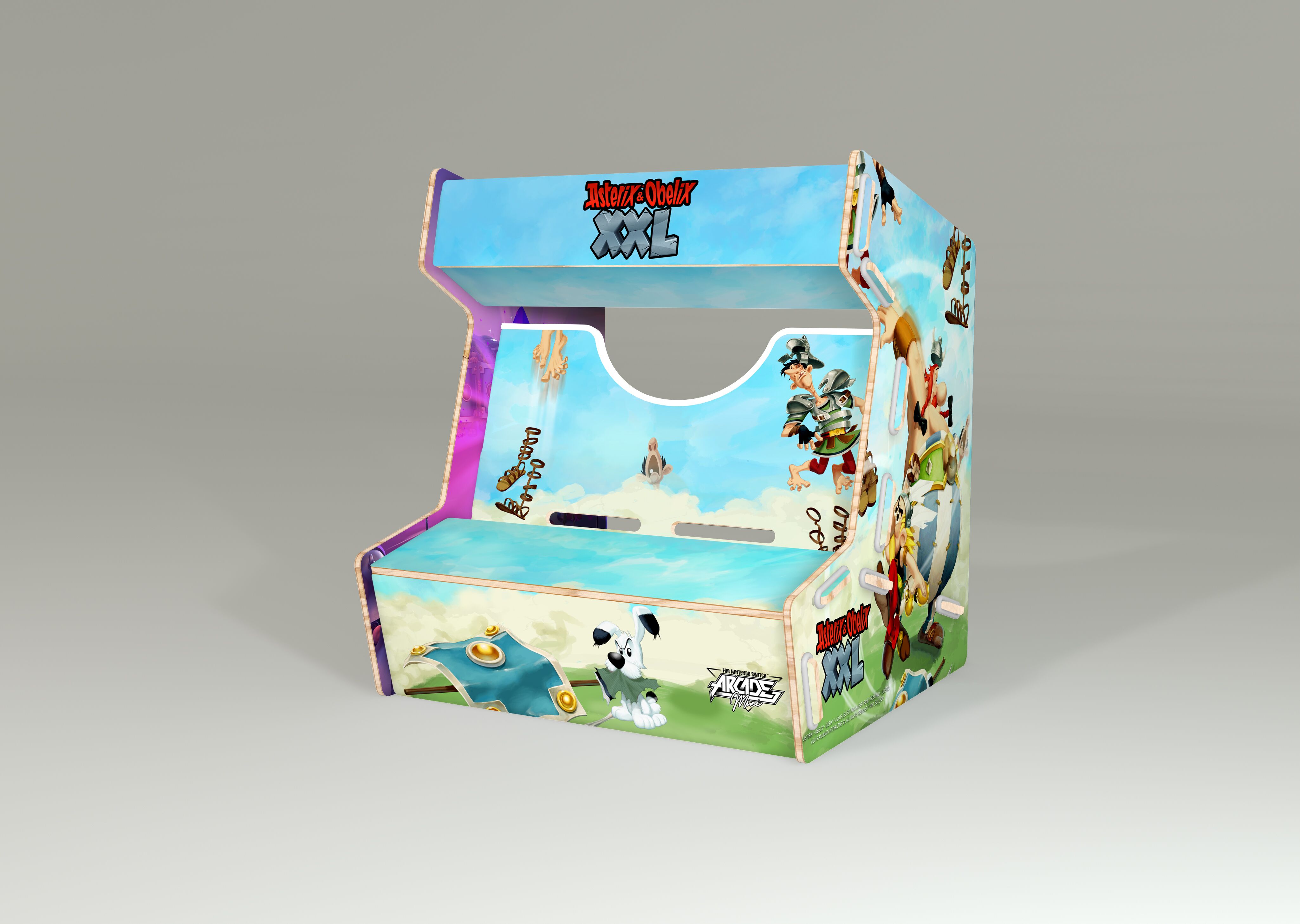 Réalisée en bois et imprimée aux couleurs de licences fortes, l’Arcade Mini se compose de 8 pièces faciles à assembler. Le maintien de la tablette Nintendo Switch dans la borne offre aux joueurs un confort de jeu total !