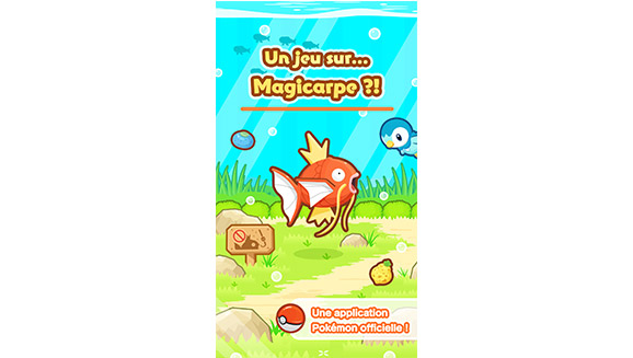 Et hop ! Voici un nouveau jeu estampillé Pokémon, sur tablettes et mobiles ! Et la vedette de cette appli n’est autre que le surpuissant Magicarpe, héros de Pokemon : Magicarpe Jump 🙂