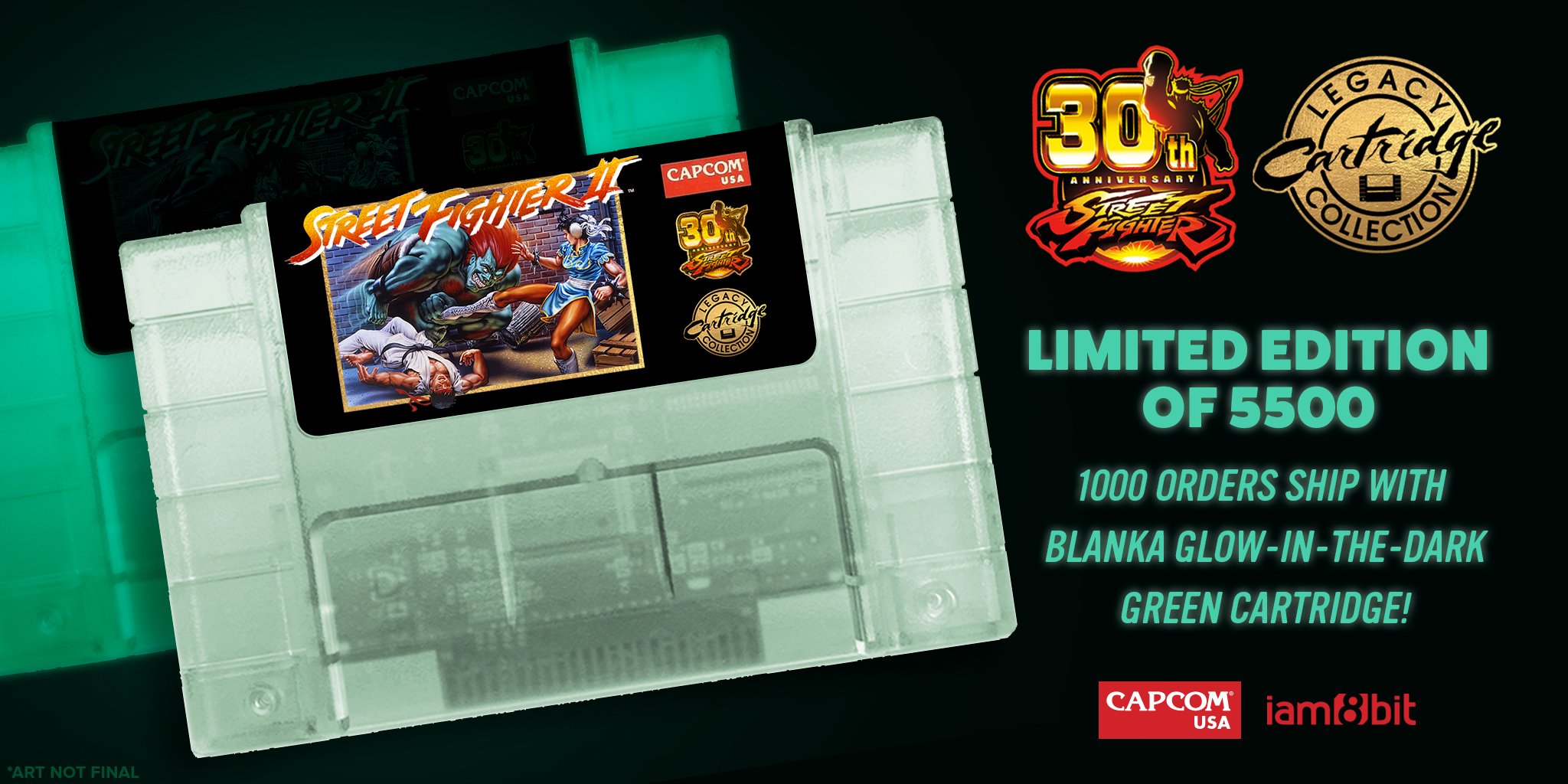 En réalité, la cartouche sera déclinée en deux versions : une rouge évoquant Ryu (4500 exemplaires), et une verte, transparente et phosphorescente (1000 exemplaires) s’inspirant de Blanka.
