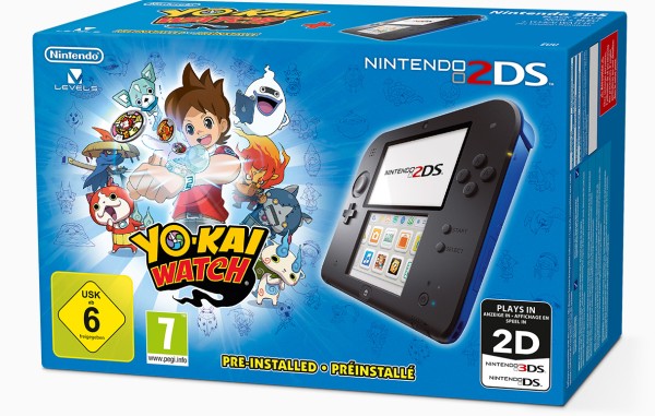 Le premier pack embarquera une console 2DS bleue, ainsi que le jeu Yo-Kai-Watch préinstallé.