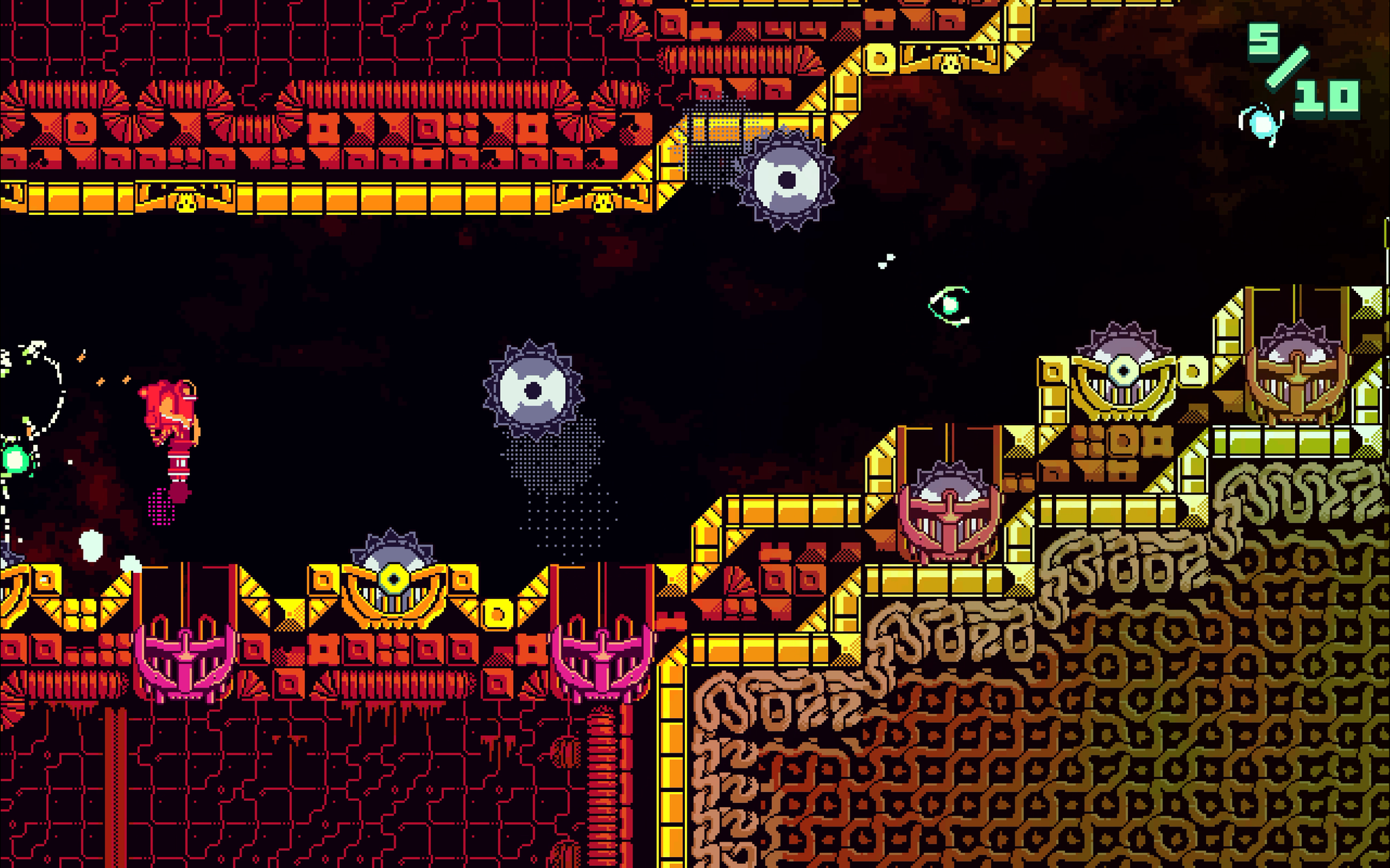 Ce runner-plateformer-actioner vous évoquera sans nul doute Downwell pour sa précision et son rythme, Flappy Bird pour le mouvement et l’exigence, avec un zeste d’Hotline Miami pour l’attitude…