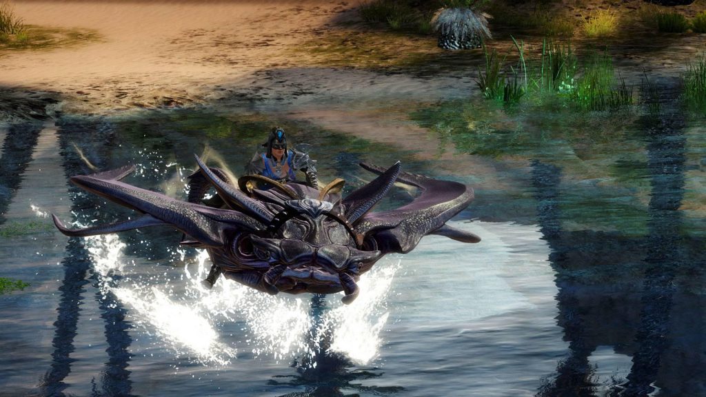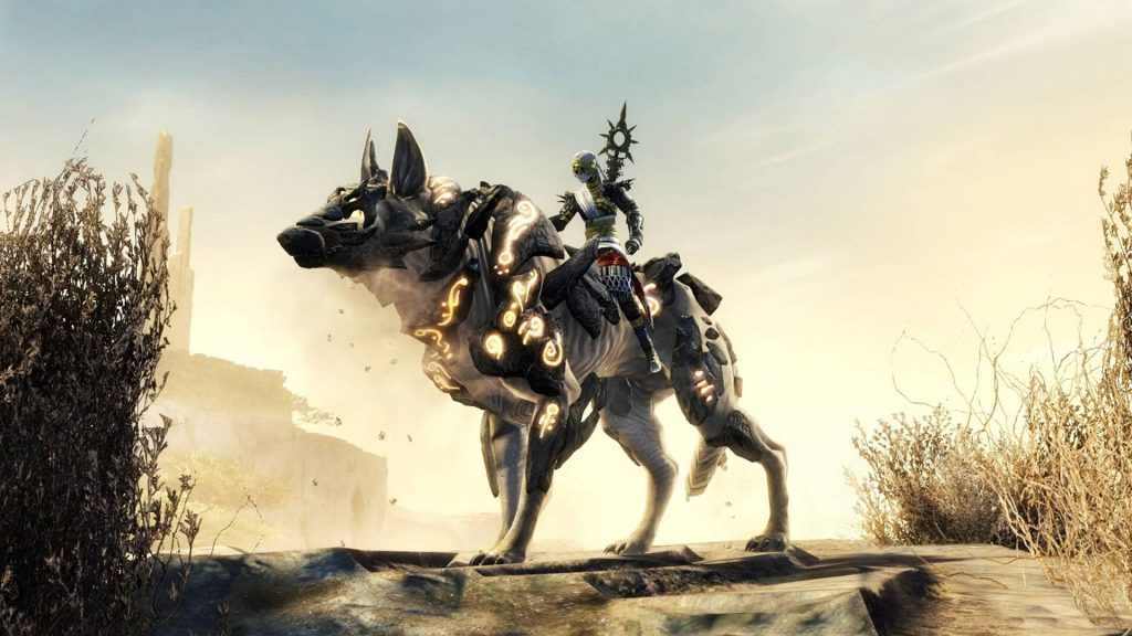 Path of Fire signe l’arrivée des montures. Elles sont au nombre de cinq. Chacune d’entre elles a des spécificités de déplacement et des utilités propres à chaque race, que l’on va devoir faire évoluer grâce à leur arbre de maîtrise. On obtient ces partenaires grâce à des quêtes spécifiques. Mais attention, il faut avoir le niveau requis et les maîtrises nécessaires.