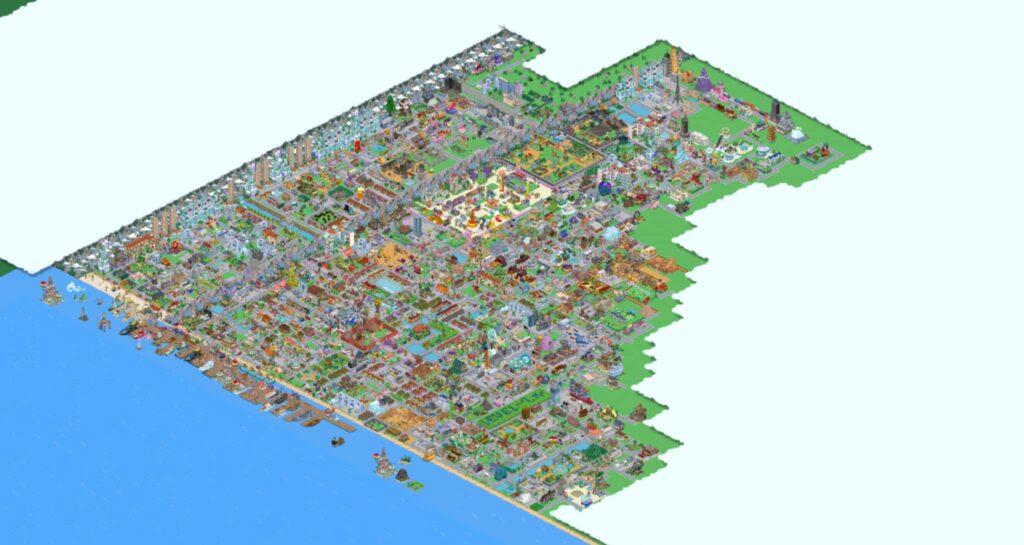 Le jeu étant un city-builder, le joueur devait placer des bâtiments comme la maison des Simpson, la Taverne de Moe, le Kwik-E-Mart, et bien d’autres lieux cultes. Des événements réguliers et des missions ajoutaient de nouvelles quêtes et du contenu. Les mises à jour fréquentes du jeu coïncidaient souvent avec des événements comme Halloween, Noël… Ou d’autres thèmes inspirés par des épisodes et saisons de la série.