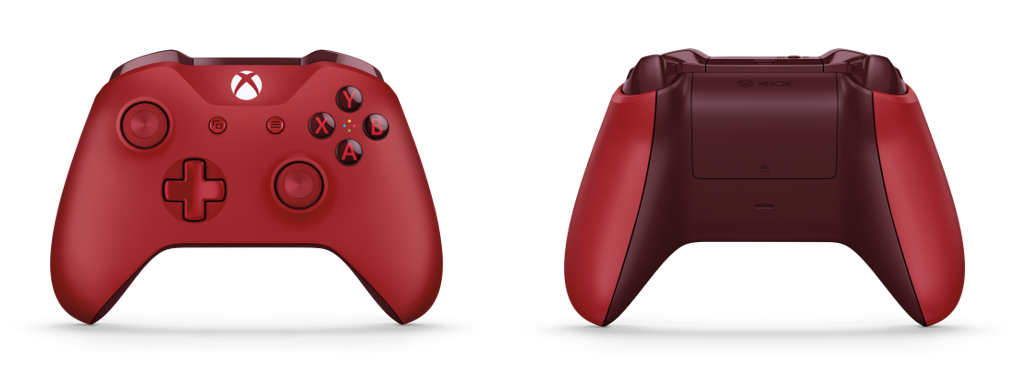 La première est la Manette sans fil Xbox – rouge, mat bicolore aux reflets brillants sur les déclencheurs, les amortisseurs et les touches directionnelles, ainsi que derrière les sticks.