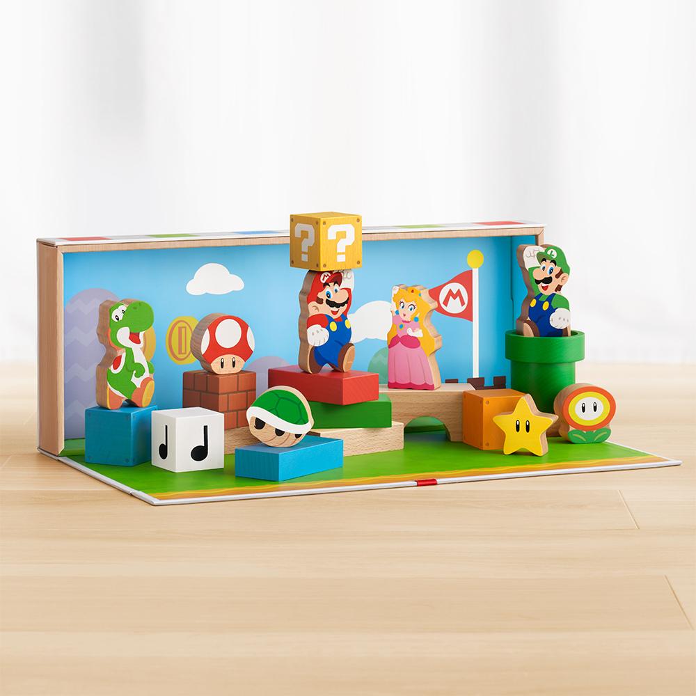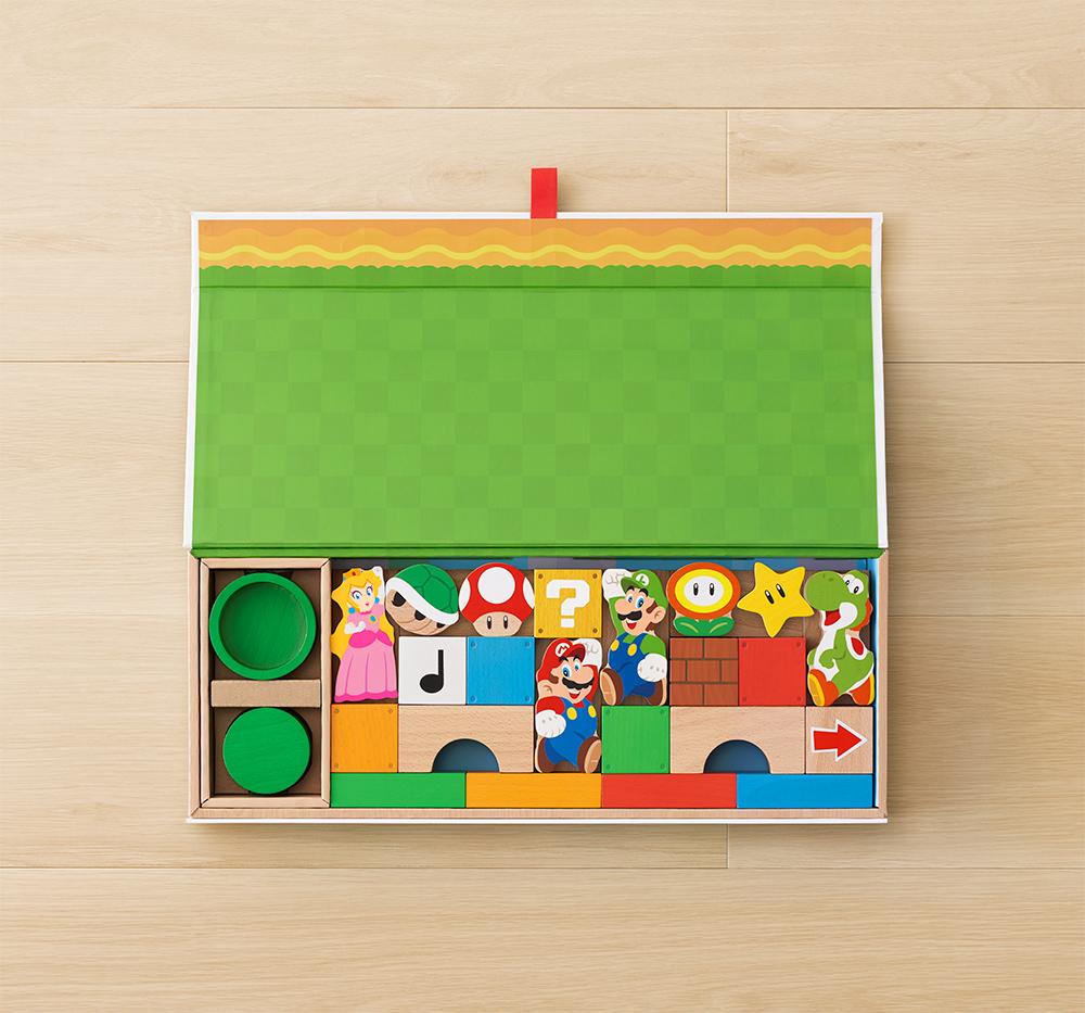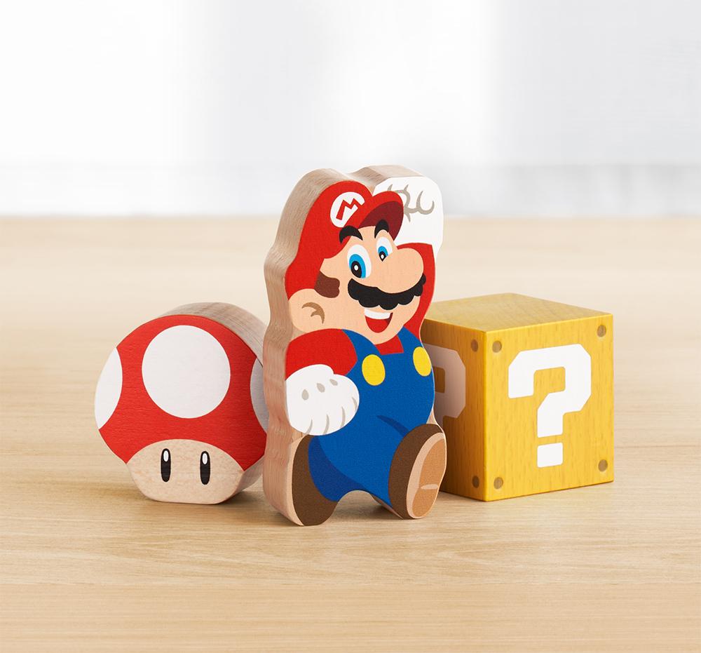 Dès le lancement européen, My Mario proposera deux jeux de blocs en bois. Un coffret Mario de trois pièces et un ensemble Mario et ses amis de trente pièces, reprenant les éléments emblématiques de la série Super Mario (clique pour agrandir les images).