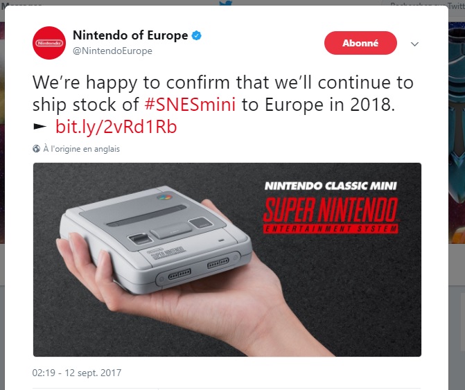 La première bonne nouvelle est que la production de Super-Nintendo Mini va continuer toute l’année 2018. Permettant ainsi aux magasins de s’approvisionner à la hauteur de la demande. Il y en aura donc pour tout le monde !