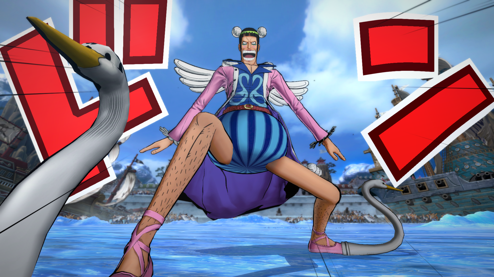Si le casting vous semble assez complet au départ, vous réaliserez que l’on en fait vite le tour : il propose les personnages principaux des arcs concernés par le mode story, plus quelques « guest », mais comme je l’ai déjà écrit, on est loin des copieux castings de Saint-Seiya ou Naruto qui balaient toute la distribution depuis le premier épisode. Beaucoup de persos emblématiques comme Aarlong, Vivi ou Rob Lucci, que l’on aurait aimé pouvoir jouer, sont ici passés dans le tableau des personnages de soutien (donc non-jouables) : ça peut frustrer le fan !