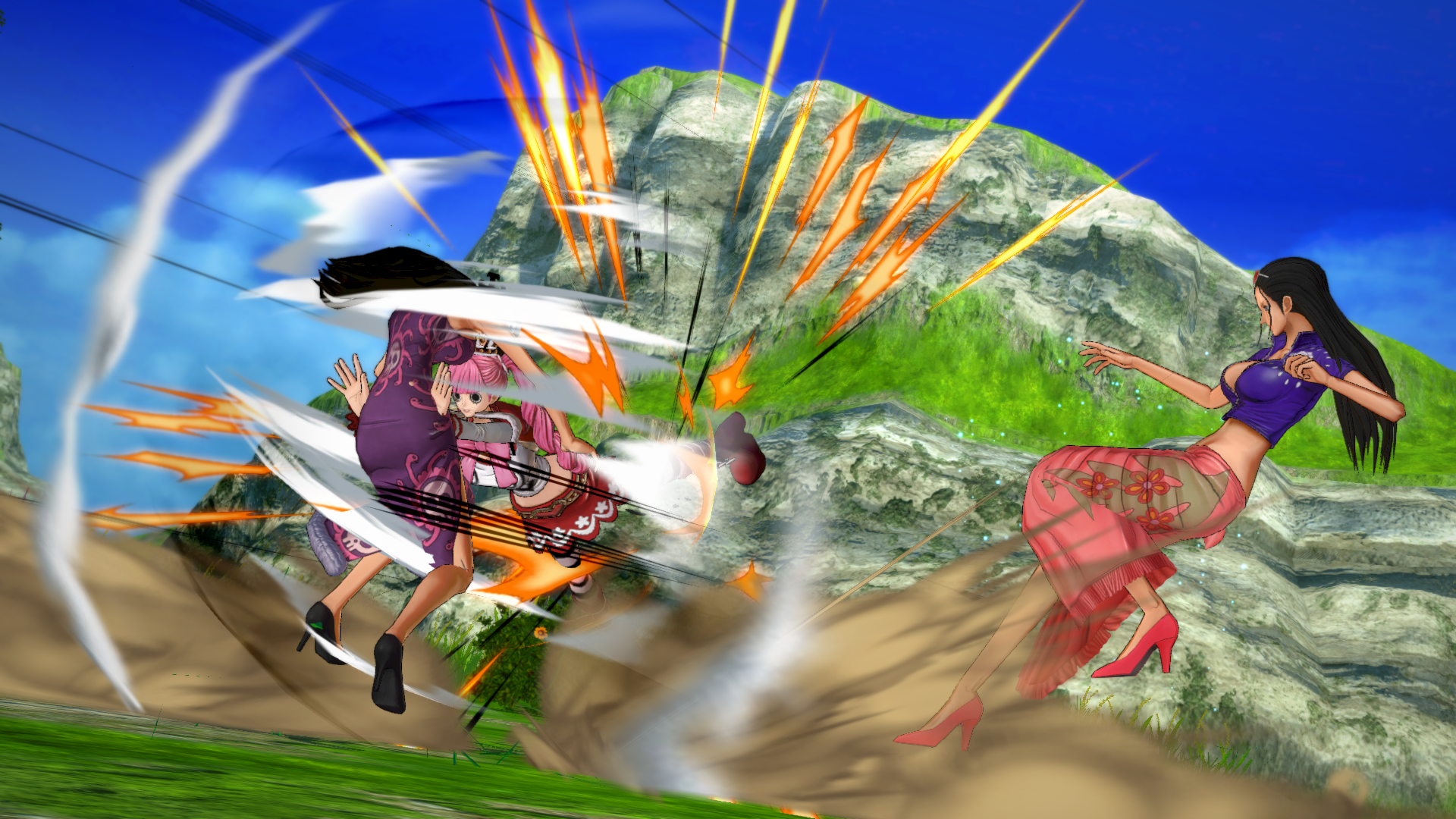 Tandis que la licence One Piece était solidement installée dans le genre musô, le développeur Spike Chunsoft a décidé de faire machine arrière en revenant au bon vieux jeu de baston old school, en un contre un ou trois contre trois si vous préférez jouer en « tag » (les persos se relaient).