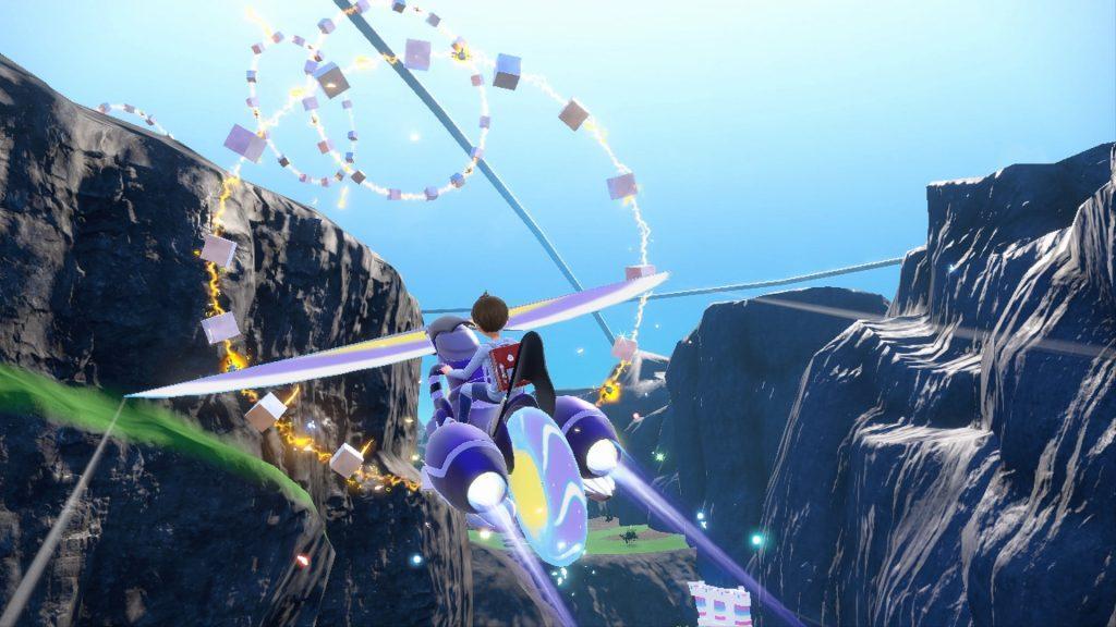 Ce DLC apporte trois grosses nouveautés dans le jeu ! La première est une capacité permettant à votre Koraidon/Miraidon de voler (à ne pas confondre avec celle permettant de planer). Un gros plus qui va faciliter vos déplacements, grâce à un appareil appelé Synchrotron, et qui vous permet, en résumé, d’incarner votre Pokémon. Autre nouveauté assez sympa : dans le cadre de votre échange scolaire, l’institut vous propose de suivre un programme appelé « Activités Myrtille » ! Des mini-défis qui vous permettent de gagner des MP (monnaie locale), en capturant tel type de Pokémon, prenant une photo précise, parcourant une certaine distance… Autrement dit, le DLC introduit un système d’objectifs secondaires. Pas vraiment original, mais cela suffit à vous tenir plus longtemps accroché à la manette !
