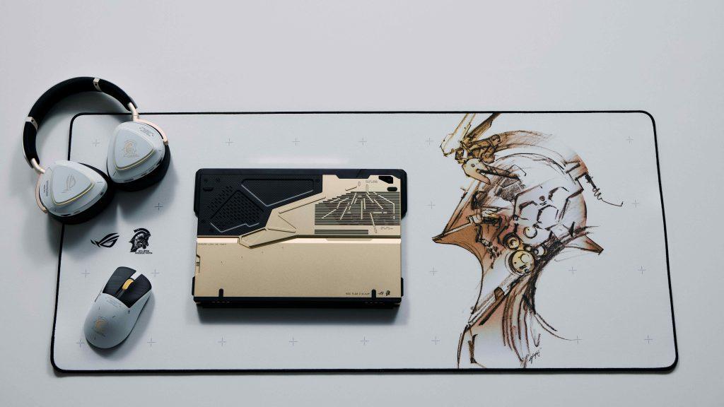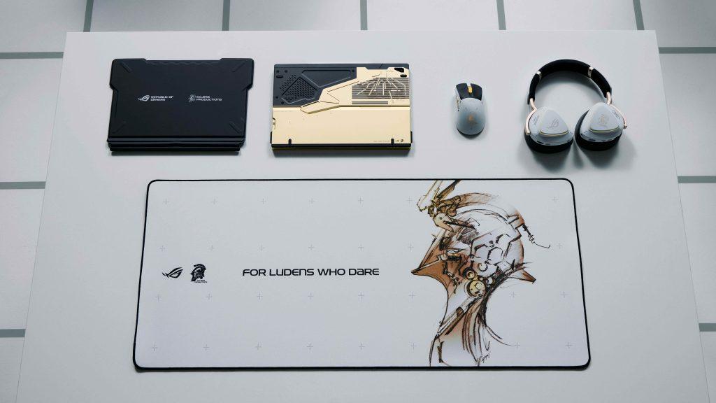 La collaboration s’étend à une gamme de périphériques en édition limitée. On retrouve le casque ROG Delta II KJP, blanc et élégant ; La souris ROG Keris II Origin KJP Edition en or, gris et blanc ; Et le tapis ROG Scabbard II XXL KJP orné de Ludens.