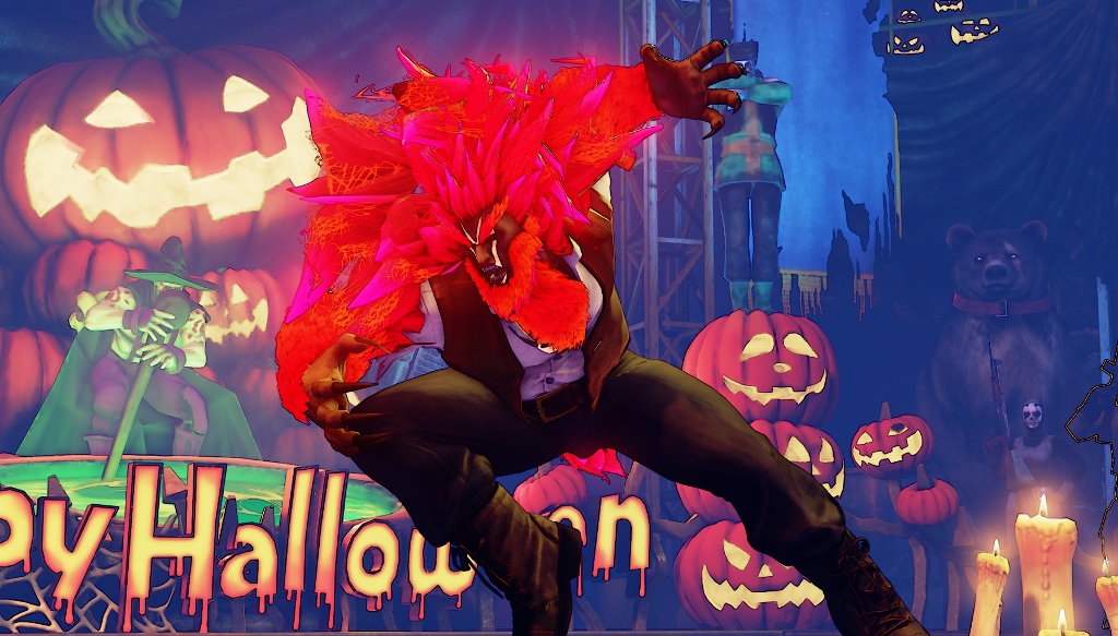 Dans Street Fighter V, on distribue châtaignes et marrons ! C’est de saison, ça tombe bien ! Mais actualité oblige, nos héros préférés se mettent aux couleurs d’Halloween, avec une nouvelle arène et sept nouveaux costumes premium !