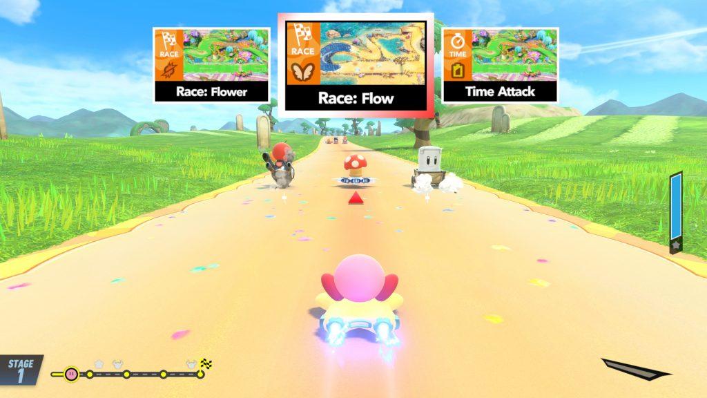 Pour preuve, des effets météo dynamiques de toute beauté : pluie, vent, brouillard et orages changent considérablement l’ambiance d’une course. Sans compter les arrière-plans qui prennent vie pour notre plus grand bonheur : des Waddle Dees qui s’affairent, des créatures qui traversent le ciel, et même des boss en arrière-plan. N’en jetez plus !