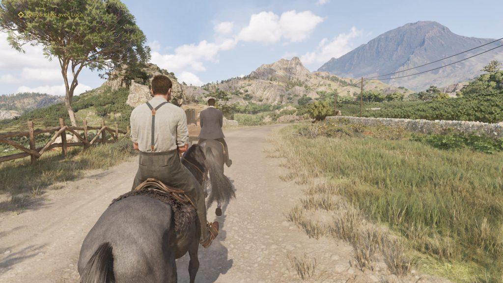 On ne va pas tourner autour du pot : visuellement, le jeu est magnifique ! C’est coloré, détaillé, immersif au possible… On se croirait vraiment en balade en Italie ! Tournant sous Unreal Engine 5, le jeu offre de superbes panoramas, des jeux de lumière, et des effets de particules (poussière, étincelles) réussis. Hormis quelques légers bugs de collision, le soft tourne superbement sur la version PS5 que nous avons eu entre les mains. On aime aussi la façon dont The Old Country retranscrit la Sicile du début du XXe siècle ! Là encore, c’est une superbe invitation au voyage, mais dans le temps cette fois. Un aspect technique qui nous fait donc parfois oublier l’histoire, et nous plonge dans une contemplation vraiment agréable à vivre.