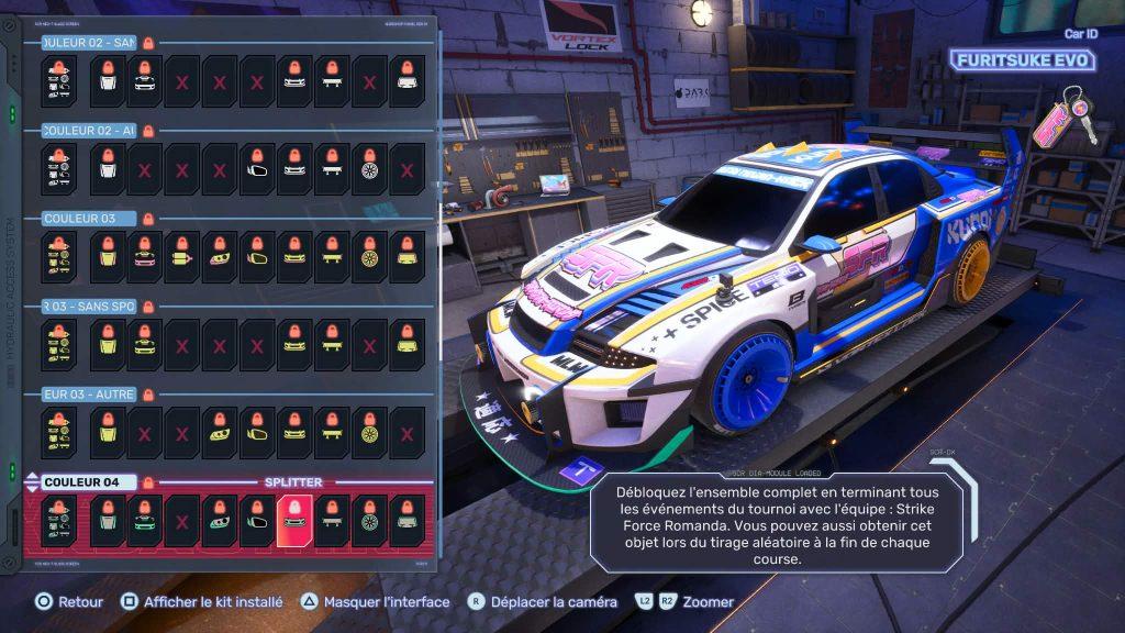 - Beaucoup de contenu à débloquer (pilotes, circuits, musiques, accessoires…)