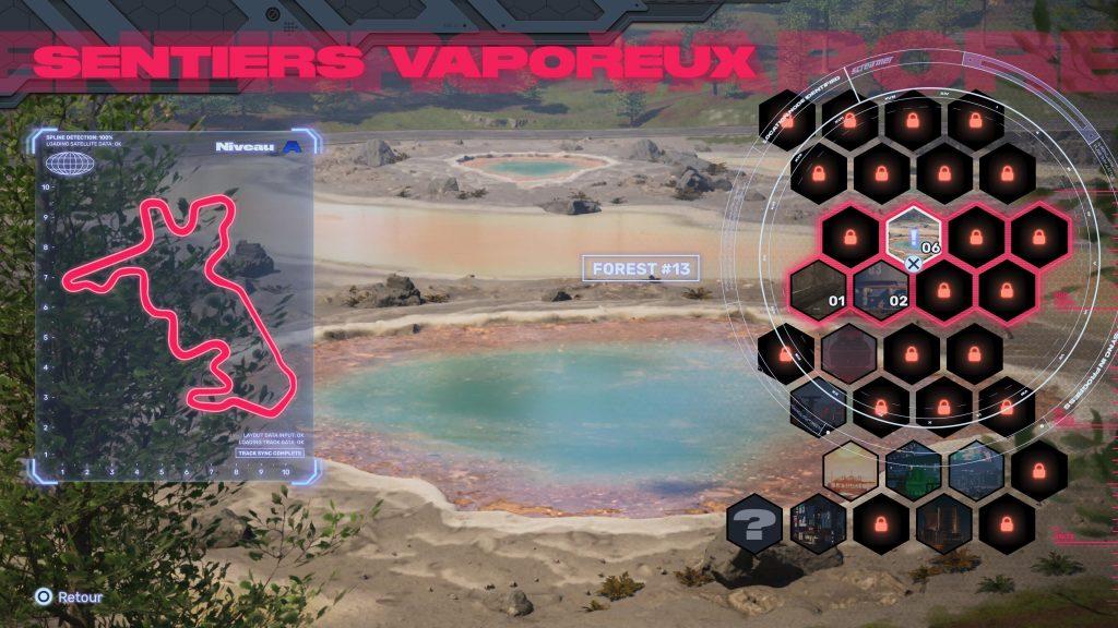 C’est assez paradoxal de débloquer le contenu d’un jeu si exigeant, si simplement en enchaînant les épreuves. D’un côté, c’est une bonne chose car ce système peut devenir la carotte qui permet aux joueurs de s’accrocher, de relancer une partie… Mais d’un autre côté, une fois tout le contenu rendu accessible, quel sera exactement le degré de rejouabilité du jeu ? Car Screamer étant dénué d’un quelconque système d’argent in-game à gagner pour acheter du contenu, ou de niveau de progression… Une fois que vous aurez tout déverrouillé et que vous aurez fini le jeu, quelle motivation vous reste t-il, hormis battre vos records persos ?