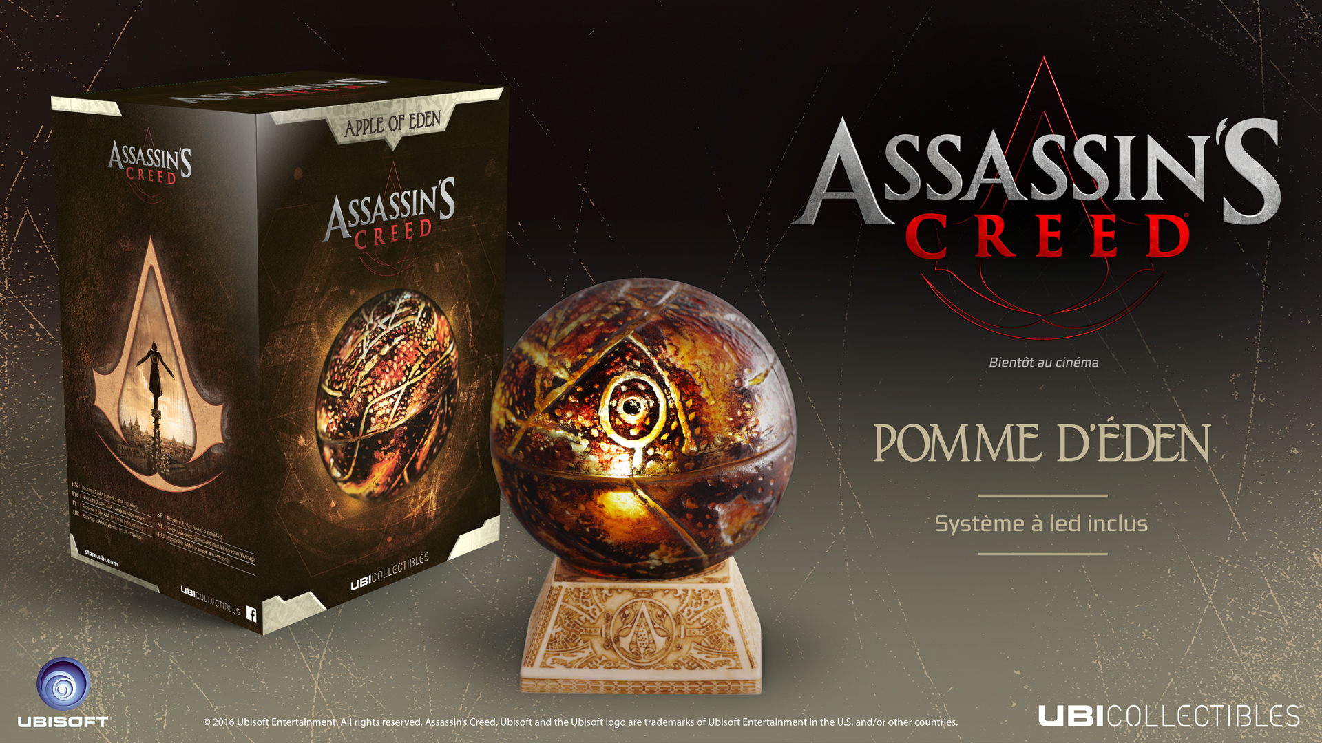 Ainsi, Ubisoft dévoile aujourd’hui de jolies figurines Ubicollectibles issues du film Assassin’s Creed, les figurines officielles d’Aguilar et Maria, mais aussi les reproductions officielles de la Pomme d’Éden et le coffre qui la contient, ainsi que la Lame Secrète d’Aguilar.